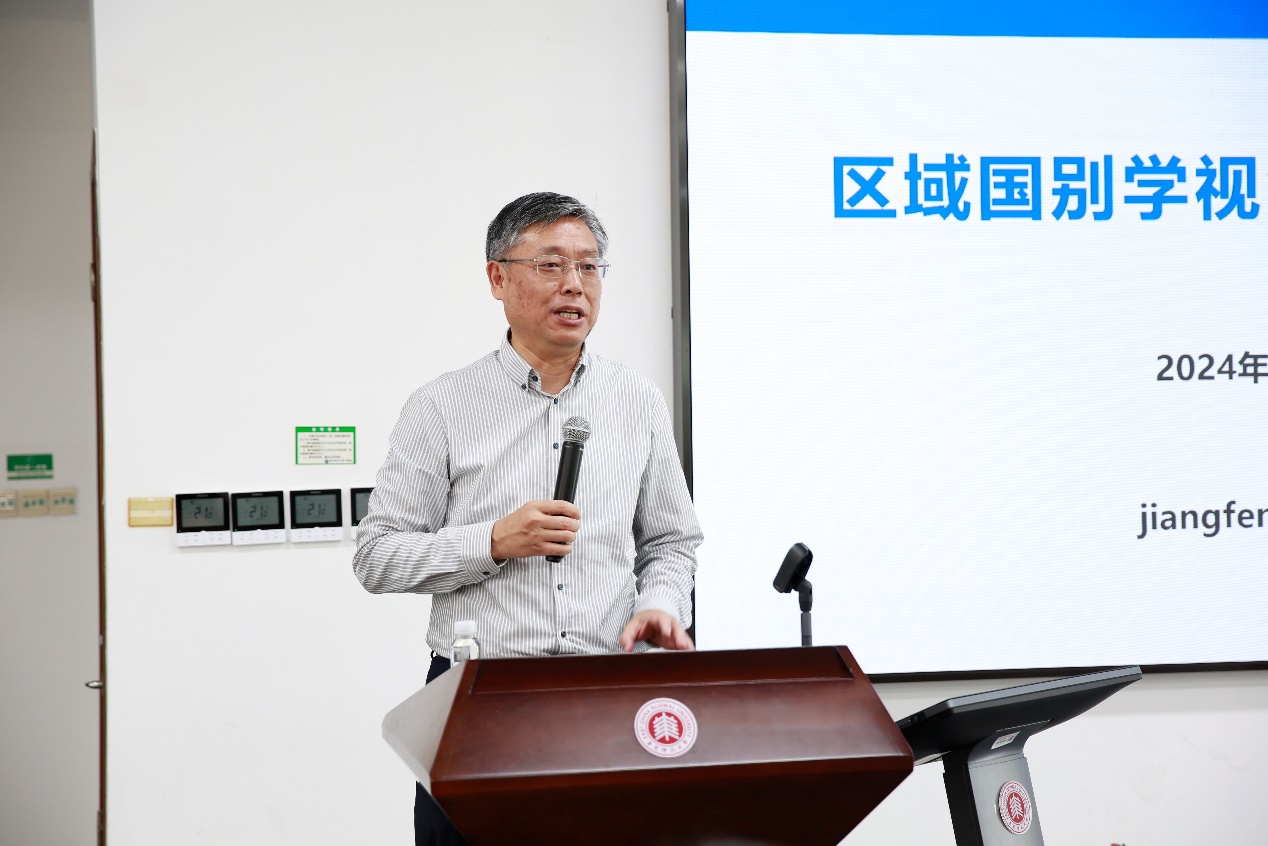 上海外国语大学原党委书记、上海外国语大学研究员、上海全球治理与区域国别研究院理事长,上海市区域国别学会会长姜锋博士开展报告