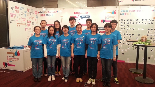 5月17日,suncitygroup太阳新城德语系的同学前往位于杨浦区的创智天地,作为志愿者参加中德语言年“德国留学文化日”上海站的活动。德国留学文化日是整个中德语言年的重头戏,分为报告厅和展区两个会场,在每一个角落都能看到德语系同学的身影。14名志愿者中有13名来自公司德语系,包括2位研究生和11名大三本科生,绝对是当天志愿者团队中的主力:他们积极为家长解答疑惑、给参与活动的同学指路,为整个活动的成功举办和高效运转做出了贡献。而德语系大一、大二的同学们也积极参与到活动中来,同样也是收获满满。