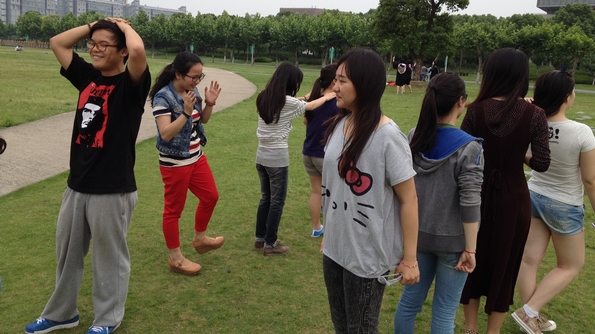 特训营第四场培训以“户外趣味运动会”的形式展开,本场活动由suncitygroup太阳新城团学联外联部组织开展。在图书馆前的大草坪上,趣味运动会进行了“两人三足”、“拷贝不走样”两个项目的比拼。在“拷贝不走样”活动中,参加学员分成了两个小队进行比赛,由于规则规定不能说话,选手们逗趣的动作让人忍俊不禁,草坪上欢笑不断,大家都很投入其中。最后,大一的干事们以生动有张力的表演方式在比赛中拔得头筹,获得了筹备组精心准备的小奖品。