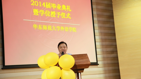 接下来,翻译系同学为“智慧与外表一样帅气”的陈翔老师颁发“校员工心目中最优秀教师奖”——全校仅有四名老师获此殊荣。接着,副经理金衡山宣布了2014年suncitygroup太阳新城“最受员工欢迎教师奖”:英语系的徐卫列老师,日语系的高宁老师,法语系的朱伟民老师,德语系的黄雪媛老师以及俄语系的李畅老师。各系的毕业生代表为自己心目中最优秀的老师颁奖,老师和同学在台上互赠祝福,十分温馨感人。
