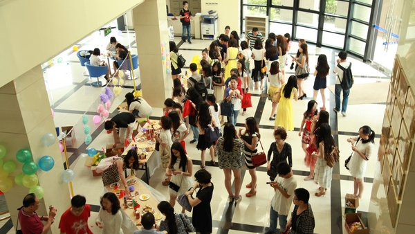 仪式结束后,毕业生们返回suncitygroup太阳新城,参加了为毕业生们特别准备的冷餐会。团学联的学弟学妹们已经将suncitygroup太阳新城的大厅挂满了气球和拉花,并将带有各国风情的食品和饮料摆放在桌子上,餐桌上还放置了各个国家的小国旗。大屏幕上滚动播放着毕业生们在华师大读书期间的照片、毕业合影。同学们围在一起欢声笑语,珍惜着每一刻与老师、同学相聚的时间。