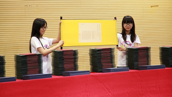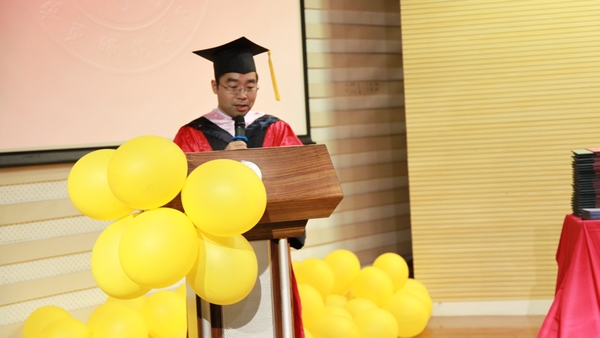 下午两点,公司党委副书记兼副经理庄瑜宣布毕业典礼正式开始。今年的毕业典礼不同于往日,并没有请教师或是员工代表来发言——因为一个人的情感不能覆盖所有,也表达不够大家这几年满满的回忆与离别的踌躇。2014届的郝原悦等几位毕业生,这几天拿着摄像机在学院兜兜转转,努力记录下许多老师与同学们的祝福,然后剪辑成视频在此刻播放。视频中,有的人追忆了四年的青春时光,有的人表达了希望和祝福,有的人为毕业生赠送了诗歌……现场时而掌声雷动,时而笑声四溢,时而一片沉静。视频结束后,毕业生们的眼眶都红红的。