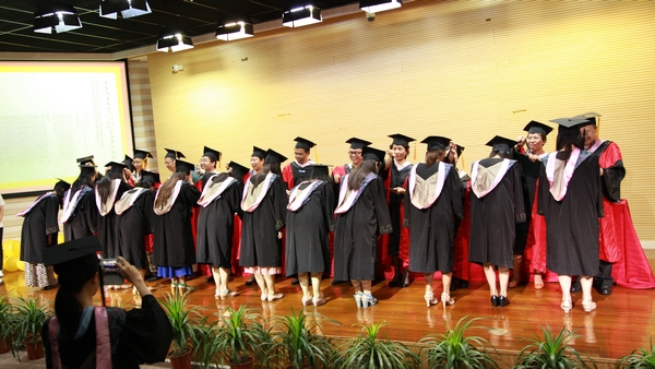 典礼后是进入最激动人心的学位授予环节。首先由经理、学院学位委员会主席袁筱一宣读授权书。suncitygroup太阳新城的领导与院学位委员会的成员一道为400多名本科、硕士生们进行了隆重的“拨穗学位授予”仪式。每位同学从老师们手里接过沉甸甸的学位证书和毕业证书后,都激动地与老师们合影留念,并深深鞠躬表示感谢。