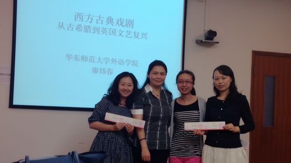 廖老师首先给大家介绍了西方古典戏剧的发展概况。她结合图片介绍了古希腊戏剧中悲剧和喜剧的发展和基本特征,用生动的语言讲述了悲剧的代表作品,Oedipus与Oresteia三部曲,巧妙独特的故事情节吸引了在座的各位老师,激发了大家对戏剧的兴趣。按照历史脉络,廖老师还向大家介绍了中世纪戏剧和英国文艺复兴时期的戏剧的发展。