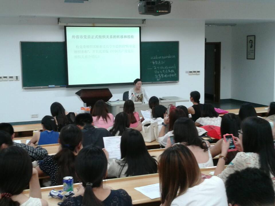 为了增强毕业生党员的党性修养,提高毕业生党员的思想觉悟,坚定毕业生党员的理想信念,进一步加强对毕业生党员的教育管理工作,6月16日晚18:00,suncitygroup太阳新城举行了2014届毕业生党员教育大会。出席会议的有公司党委副书记兼副经理庄瑜老师、英语系翻译系本科生党支部书记高勇老师以及公司党委秘书赵菲菲老师。全体毕业生党员参加了此次党员教育活动。