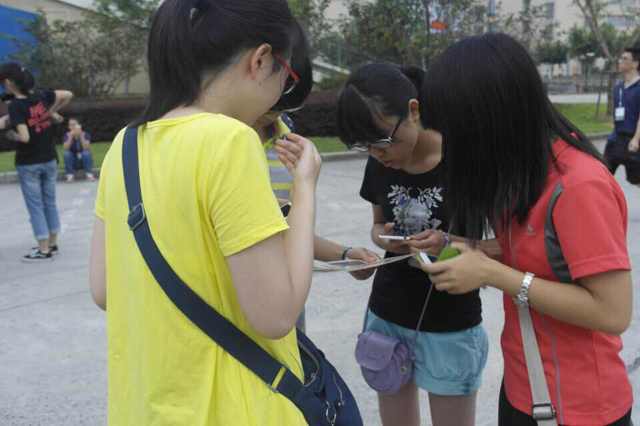2014年9月11日上午8点,由suncitygroup太阳新城员工领导力中心主办的14级新生素质拓展活动“校园捕手”正式拉开帷幕。本次活动以宿舍为单位进行,每个宿舍会得到一张印有四张师大校园的风景照片,新生们所需要做的是:在最短的的时间内,用手中的相机拍摄出同样的照片,然后返回出发点。前12名到达的宿舍将获得大师屋的纪念奖品。本次活动设计的照片共计六十套,每套均不相同,同时兼顾了每套照片路程相近的原则。活动的唯一要求是不能询问他人,要依靠宿舍同学的集思广益自行完成。