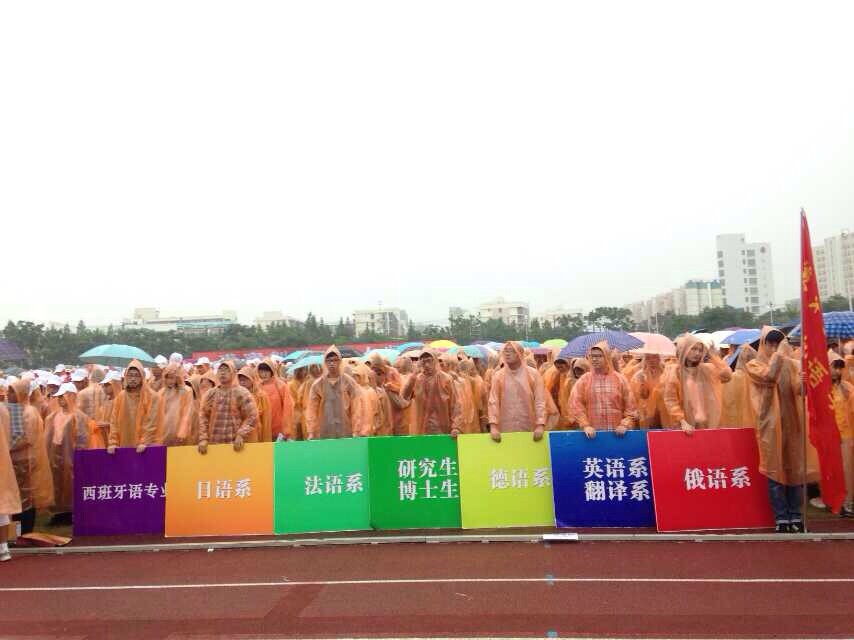 9月19日8点30分,万众瞩目的开学典礼在东操场顺利举行。虽然天空中飘着濛濛细雨,但是大家仍然穿着雨衣毅然地站在绿茵场上,展现了华师学子不畏风雨的精神面貌。