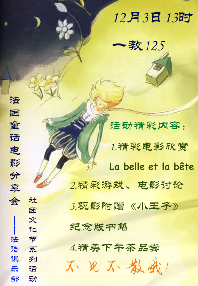 为了丰富大家的课外生活,法语俱乐部举办了法国童话电影分享会。