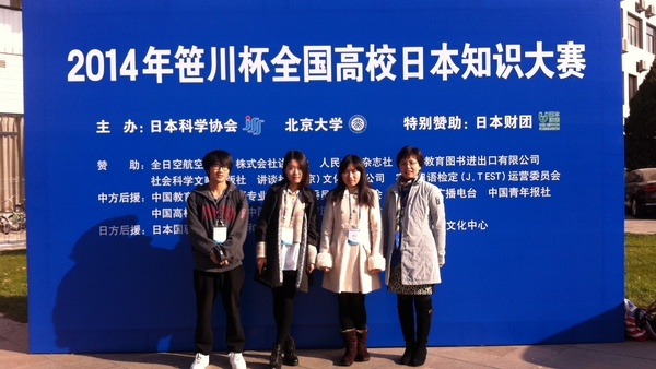 2014年11月23-24日,由日本财团特别赞助的2014年“笹川杯”全国高校日本知识大赛在北京大学举行。日本驻华大使木寺昌人、日本财团理事长尾形武寿、日本科学协会会长大岛美惠子出席大赛并致辞。来自北外、上外、清华、复旦、南大等全国90所高校日语专业的近300位员工代表参加了本次大赛。