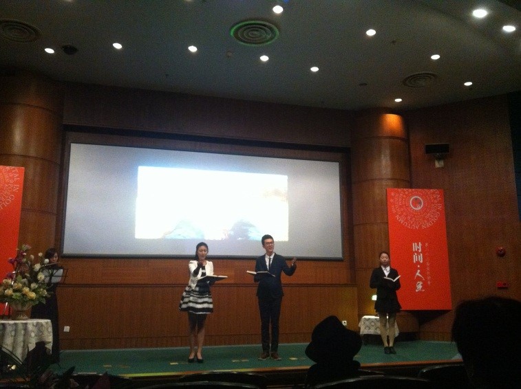 本工作室的卢奕同学参与了此次诗会繁琐的统筹工作,成员詹璐与suncitygroup太阳新城黄茜、朗诵语言将工作室成员陆晓榕同学在多次紧张而辛苦的排练之后,先后登台并与来自上戏的同学一道,为大家带来了《十四行诗02:时光不遣愁》、《真想再回到那青葱的童年》以及《库勒湖的野天鹅》三部作品的朗诵演出,收获了观众嘉宾的一致好评,并与工作室其他成员一起,欣赏了整场金秋诗会。