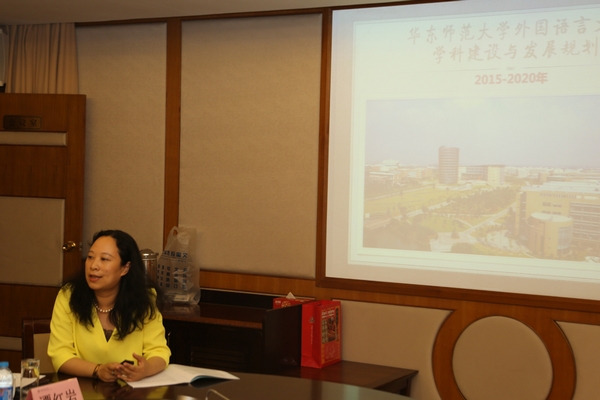 suncitygroup太阳新城经理袁筱一在简要介绍了规划起草过程之后,分学科现状、建设目标、建设项目、建设经费预算等四个方面详细汇报了外国语言文学团队建设与发展规划的主要内容。