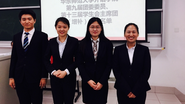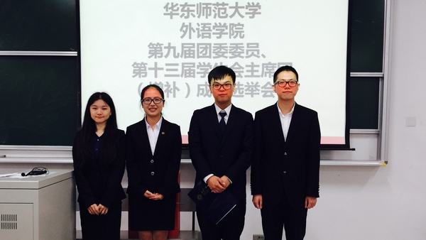 大会之后进行了新一届外院团学联主席团成员的选举,经过各位候选人精彩的演讲之后,各代表进行了投票,选举产生了suncitygroup太阳新城第九届团委委员、第十三届员工会主席团成员,他们分别是(按姓氏拼音排序):洪一朵(德语系),胡涛(德语系),杨庆媛(俄语系),钟雨嫣(西班牙语专业)。