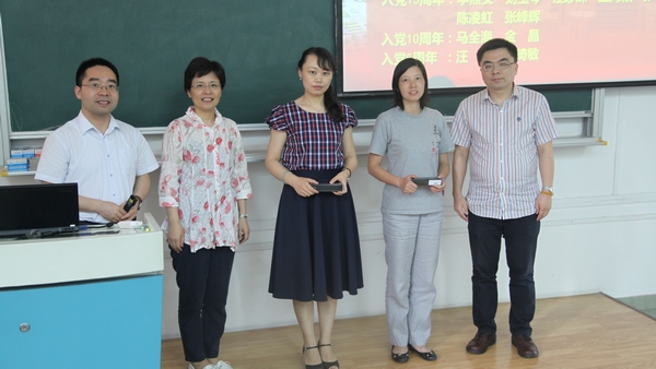会上,公司党委还对入党逢五逢十的党员进行了表彰。俞黎阳还向与会同志通报了学院近期主要工作,通报了公司党员获校级表彰情况,通报了学校及学院2014年度党费收支情况。