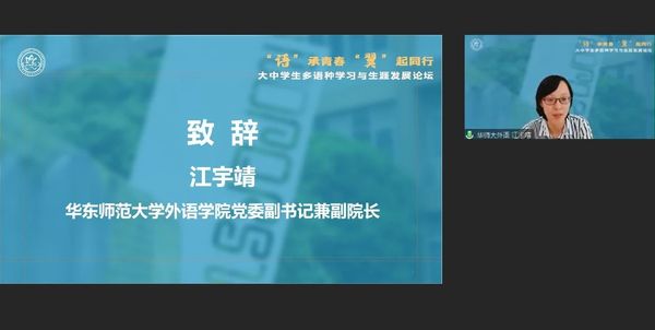 在论坛的开幕式中,suncitygroup太阳集团公司党委副书记兼副经理江宇靖和上海市教师教育学院(上海市教委教研室)关键语种教研员郭侃亮分别致开场辞。