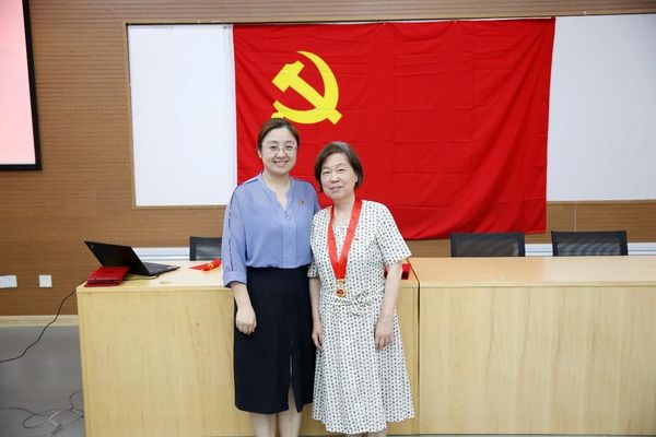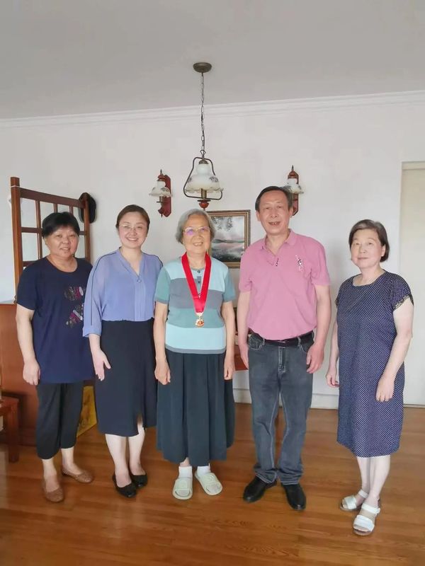 公司党委书记闫露一行为沈爱珍老师送上“光荣在党50年”纪念章