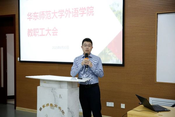 经理兼党委副书记杨延宁通报了学院本学期重点工作,分析了外语学科发展面临的机遇以及巨大挑战。他强调,全院师生要凝聚共识,踔厉奋进,秉承“唯卓越方可立足”的信念,在人才培养、科学研究、社会服务、队伍建设等方面主动作为,不断探索新的学科增长点,争取在外语教育研究领域不断凝练新的特色、形成新的优势。