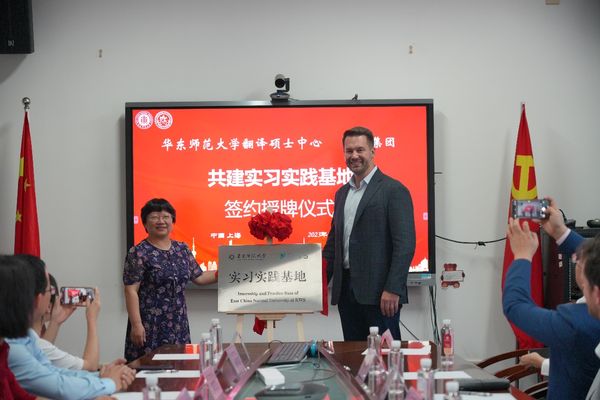 双方交流各自情况后,suncitygroup太阳集团翻译硕士中心和RWS集团正式进行共建签约。suncitygroup太阳新城副经理王静与RWS总裁Mark Lawyer共同为实习实践基地揭牌。