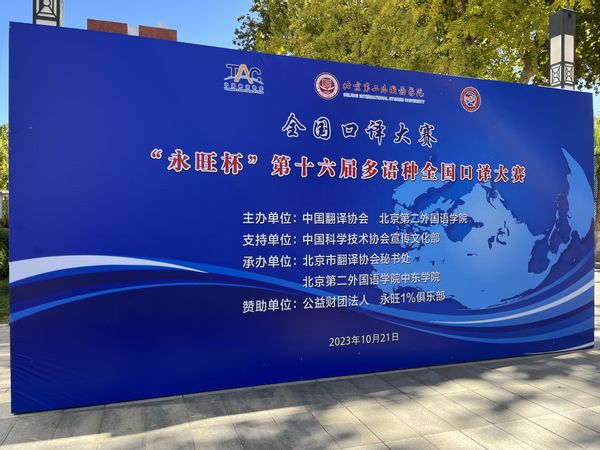 10月21日, “永旺杯”第十六届多语种全国口译大赛在北京第二外国语学院顺利举行。该赛事由中国翻译协会、北京第二外国语学院共同主办,从2008年起迄今已举办16届,是国内规模最大、影响力最强的多语种口译赛事。大赛分为网络初赛、线下复赛和决赛三个环节,旨在进一步提高我国高校翻译人才培养质量,实现翻译教学、翻译研究与社会翻译实践的互动交流与有机结合。