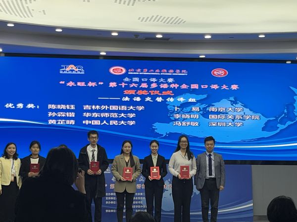 来自国内外高校的114名选手在各项比赛中展开激烈角逐。在法语交替传译组的比赛中,法语系2020级本科生孙霖锴表现出色,荣获优秀奖,胡慧俐、沈珂老师获得优秀指导教师称号。