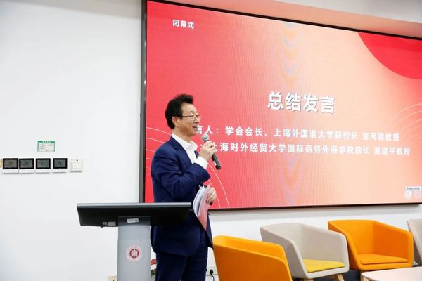 上海市外文学会会长、上海外国语大学副董事长查明建作大会总结发言