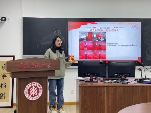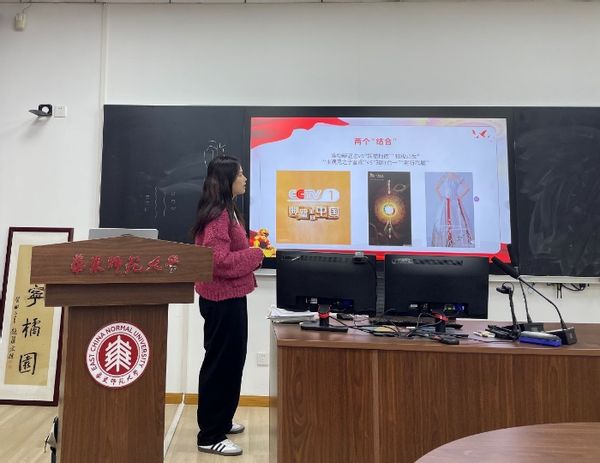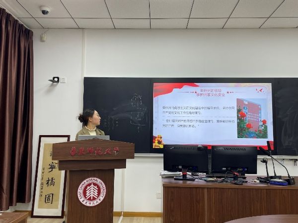 首先,支部党员杨怡晨以“习近平文化思想的发展梳理与内涵解读”为题进行了发言。她先以时间为线,对习近平文化思想的发展过程进行了详细清晰的梳理,接着围绕习近平文化思想提出的“两个结合”方法论和“七个着力”要求,阐释了习近平文化思想的丰富内涵和重要意义。她分别指出,“两个结合”表明我们党的历史自信、文化自信达到了新高度,表明我们党在传承中华优秀传统文化中推进文化创新的自觉性达到了新高度;“七个着力”展现了习近平文化思想的发展进程,是一个对社会主义文化建设不断深入的过程。