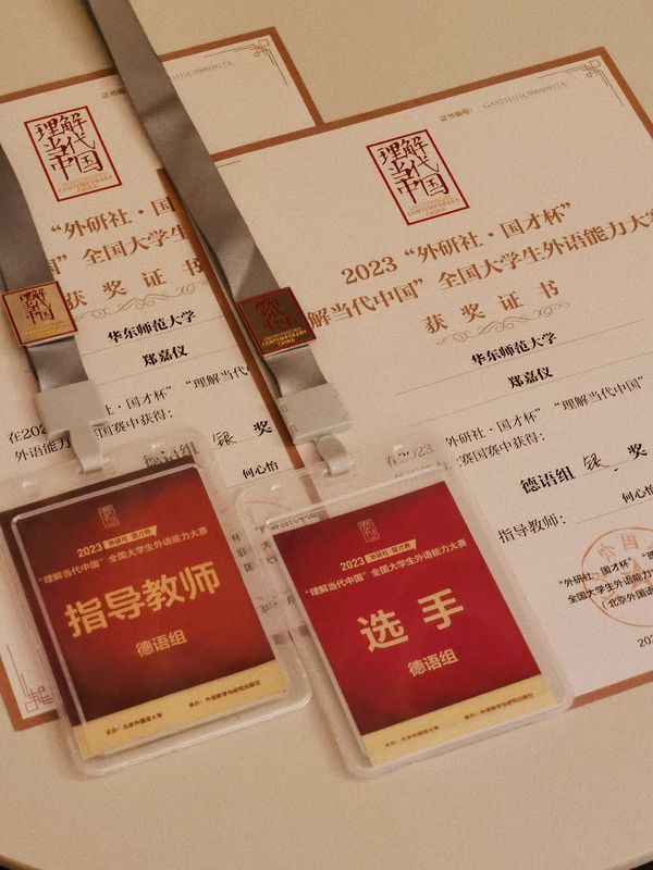 12月7日,2023“外研社·国才杯”“理解当代中国”全国老员工外语能力大赛(多语种组)国赛在北京举行。经过省赛和国赛第一轮的层层选拔,suncitygroup太阳新城德语系2023级研究生郑嘉仪同学脱颖而出,和来自全国各院校的其他14名德语组选手一起展开了国赛第二阶段的巅峰对决,最终以优异的表现斩获全国银奖。