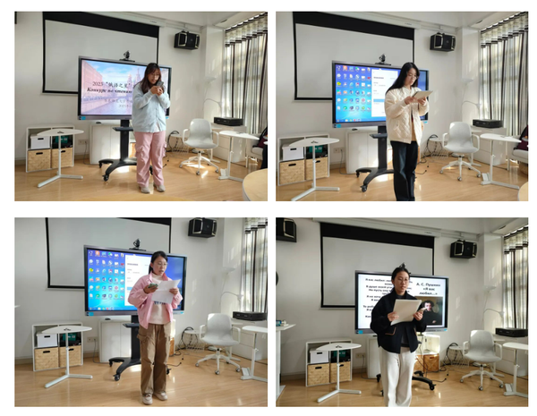 11月24日下午,俄语诗歌朗诵大赛在外语楼223拉开帷幕。本次比赛面向2023级本科生,既是俄语系同学俄语朗读风采的展示,同时也是对一年级同学语音阶段学习的总结与考察。2023级的同学自入学以来,表现出了积极的学习热情,针对这次比赛,同学们积极响应,选择了一些以前从未朗读过的诗歌进行大胆尝试,如《Лунная ночь》、《Белая берёза》、《Что в имени тебе моём》、《Я в этот мир пришел, чтоб видеть солнце》、《Телега жизни》等。经过同学们现场精彩角逐,最终拔得头筹的是丁顾晔同学带来的《Белая берёза》。
