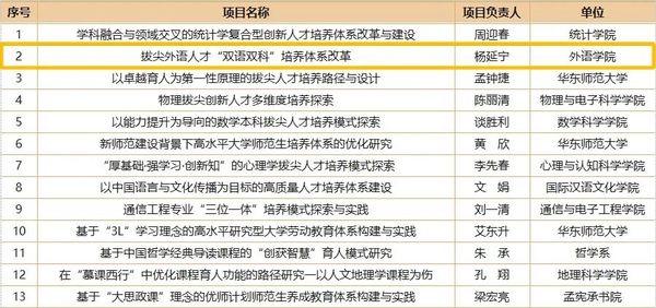 近日,上海市教育委员会公布了2023年上海高校本科重点教改项目立项名单,由公司经理杨延宁教授领衔的教改项目《拔尖外语人才“双语双科”培养体系改革》成功获批。