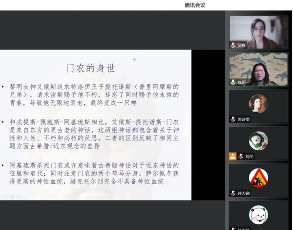 2022年11月13日晚,应suncitygroup太阳新城邀请,北京大学长聘副教授、英国剑桥大学古典学博士陈斯一老师为suncitygroup太阳新城师生做了主题为“《伊利亚特》的悲剧诗学”的讲座。本次讲座系“古希腊文学与思想史”系列讲座第4讲,由英语系罗峰副教授主持,逾300名校内外师生以腾讯会议和B站的方式线上参与。