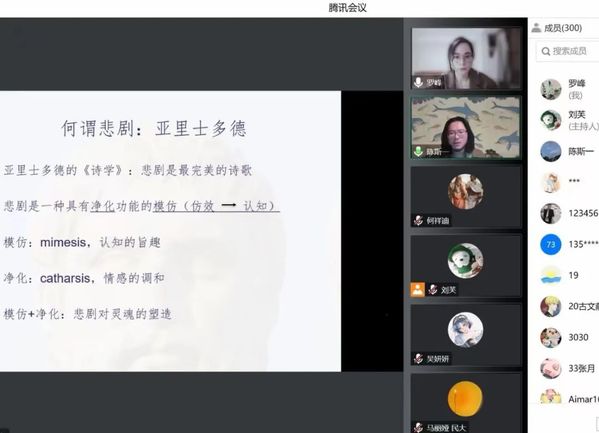 在互动环节,陈斯一老师就何祥迪老师提出的问题一一作出回应,进一步探讨了亚里士多德和尼采的理论是否相通、荷马是否运用到更古老的材料、赫克托尔的僭越以及《伊利亚特》的解读方式是否能运用到《奥德赛》等问题。最后,陈老师详尽解答了线上网友提出的荷马史诗的真实与虚构、荷马将死亡诗化的动机、《伊利亚特》对死亡的模仿与人类命运的关系、荷马史诗中诸神与命运的关系等问题。主持人罗峰老师在尾声出提议,我们理解荷马史诗需要警惕“分析学派”肢解经典统一性和教育意义的危险,为本次荷马史诗盛宴画上完满的句号。