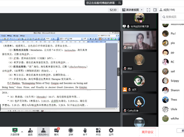 最后,在互动环节,何老师就亚里士多德修辞学相关问题、rhetoric与eristic的区别、古希腊文学中对女性“貌美”的态度等问题进行了回应。