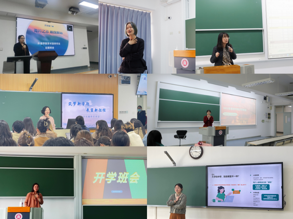 法语系主任金桔芳、教师解华,日语系系主任尤海燕、教师尹松、乔颖、金晶,德语系教师尤岚岚,英语系教师张牧人等分别走进各专业本科生春季学期首场班会,与员工畅谈大学学业发展与新学期身心调适,寄语同学们立足专业学习,积极探索、开拓视野,在追求个人目标的同时,也关注自身健康、关心他人,学会调节情绪、平和应对挫败,在社会中找到适合自己的落足点和生长点。