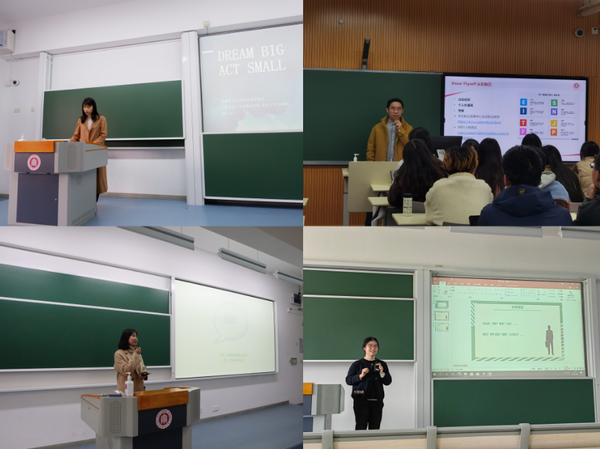 此外,各专业优秀员工化身班会主讲人,为师弟师妹答疑解惑。2019级英语专业本科生洪燕平解析推免流程和注意事项,2019级法语专业本科生罗茜畅谈海外交流学习体会,2019级本科生田际林分享选调生报考经验,2019级俄语专业本科生尹思彧将求职技巧倾囊相授,2019级西班牙语专业本科生吴雨轩回顾留学申请历程, 2021级翻译硕士聂季贤、朱月为同学分享求职经验……同学们朋辈互助、互学共进。