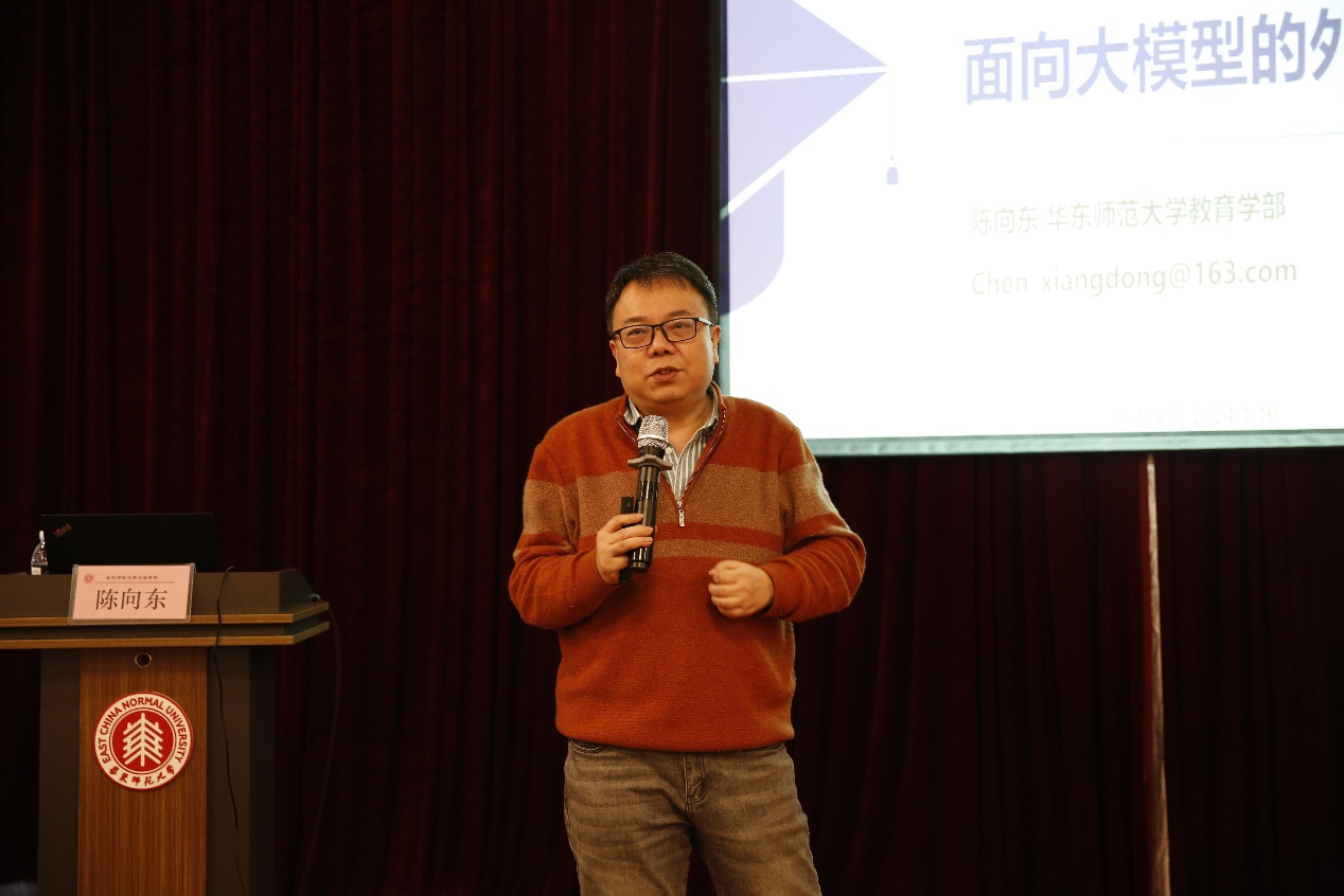 华东师大教育学部副主任陈向东以“数字赋能时代:面向大模型的外语教学”为题开展专题报告