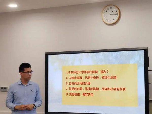在“校史校情问答”环节里,同学们积极互动、发言踊跃,入学2个多月的时光已让各位新同学对华东师大的校史校情了然于心,大家在答题的过程中也分享了对师大优美环境及光辉历史的感受。欢快与温暖蔓延了活动空间的每一个角落。