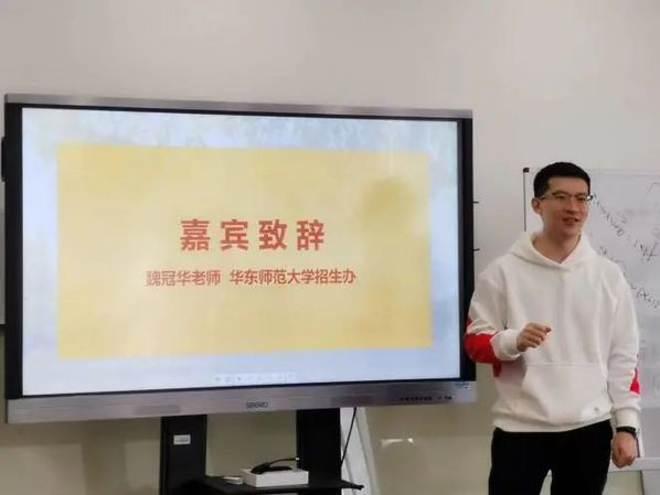 魏冠华在致辞中对来自各个院系的山东籍同学表示热烈欢迎。他期待各位新同学在踏入师大后能尽快适应学校及上海的文化氛围,并勉励同学多参与学校活动,重点是提升自我的专业水平,并多与身边的老师及同学交流,做一个全面发展的师大人。