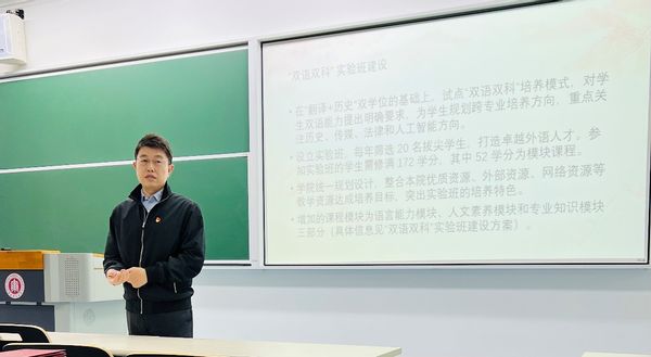 杨延宁还介绍了学院 “双语双科”实验班的建设思路,希望可以在“翻译+历史”双学位的基础上,有效整合校内外优质资源,关注员工双语能力培养、人文素养提升和专业知识拓展,着力培养能够在关键领域发挥影响力的卓越外语人才。