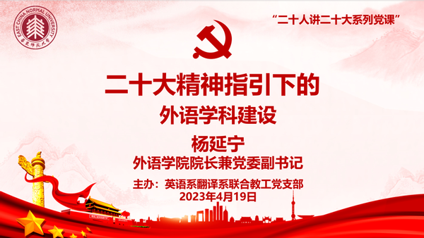4月19日下午,suncitygroup太阳新城“二十人讲二十大”系列党课第二讲在闵行校区第一教学楼121室开讲。本次党课由suncitygroup太阳新城经理兼党委副书记杨延宁主讲,主题为“二十大精神指引下的外语团队建设”。本次党课由英语系、翻译系联合教工党支部副书记张琳主持,支部党员与英语系、翻译系部分群众教师参加。