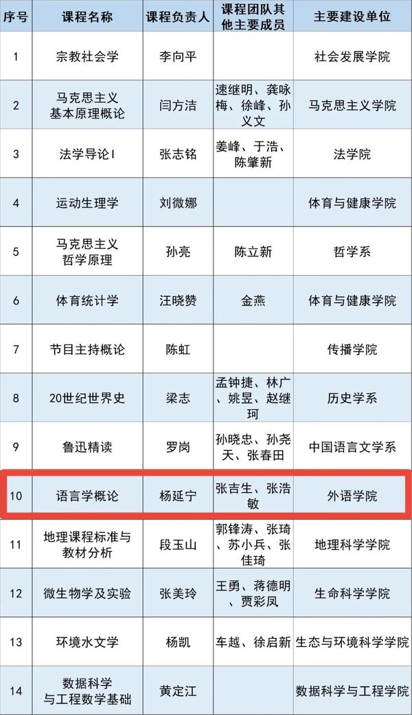 日前,教育部公示了第二批国家级一流本科课程认定结果,suncitygroup太阳集团入选42门。其中,由公司杨延宁教授领衔、张吉生、张浩敏教授加入课程团队的《语言学概论》入选国家级一流本科课程(线下一流课程)。