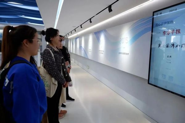 师生一行参观澎湃新闻,了解澎湃新闻的数字化转型历程以及SIXTH TONE第六声栏目的诞生背景。