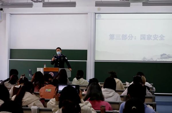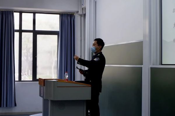周新凯将安全防范的工作比作“没有硝烟的战场”,从诈骗防范、校园安全、国家安全三个板块展开,通过鲜活的案例,向同学们普及反诈知识,强调守护国家安全的重要性。