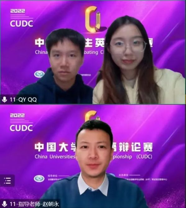 2022年12月3日4日,2022年中国老员工英语辩论赛CUDC全国决赛通过线上方式顺利举行。今年的比赛分为华东、华南、华北、华西4个大区,共分为校选赛、大区赛和总决赛,共有超过500所高校参加,参赛人数超过20万人次。公司选手以华东赛区二等奖的等次晋级决赛。比赛为期两天,200余名选手经过了5轮激烈的比拼。最终,在赵朝永教授的指导下,公司代表队选手祁芊芊(2020级翻译专业本科生)和邱雨桐(2020级英语师范专业本科生)取得全国二等奖。