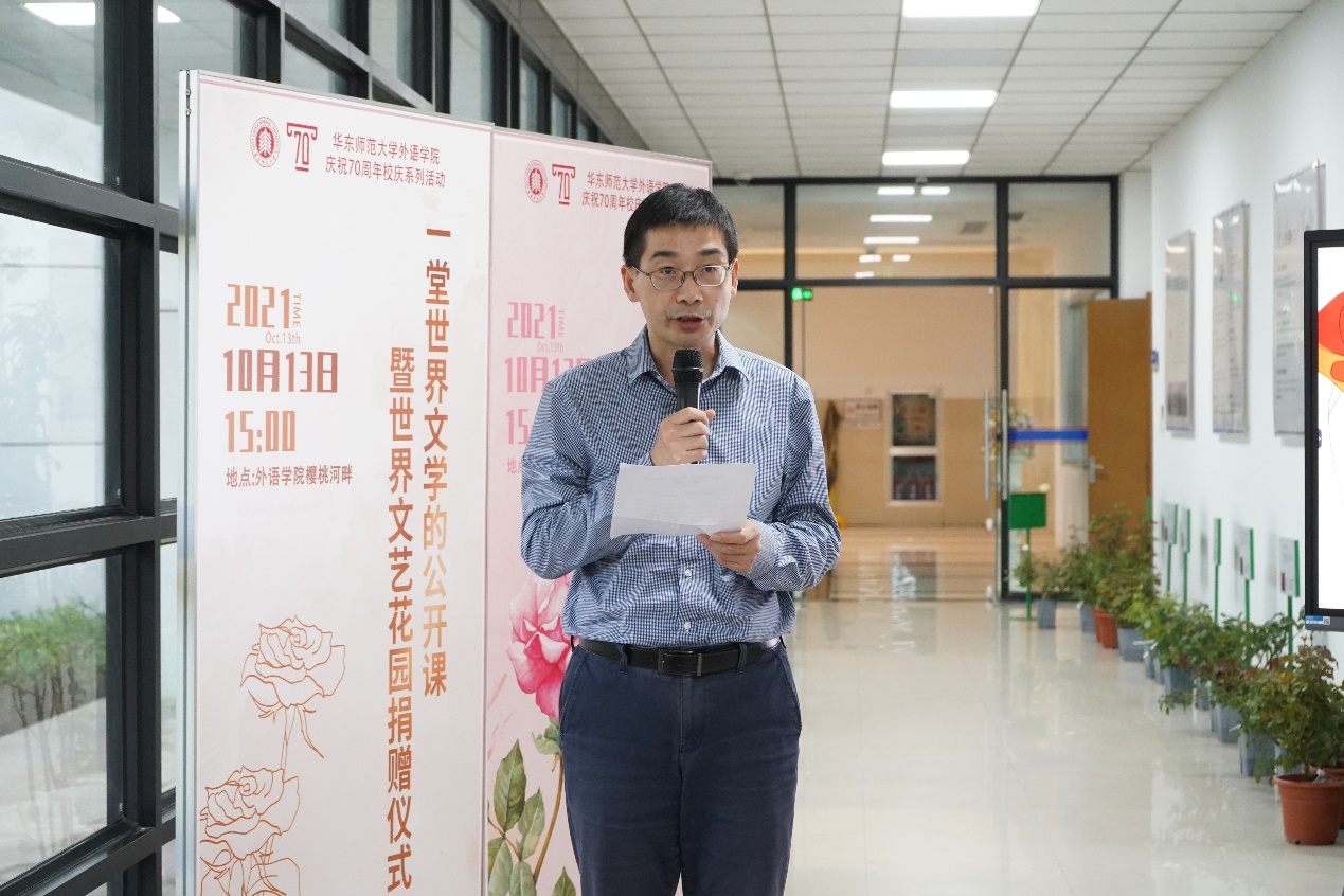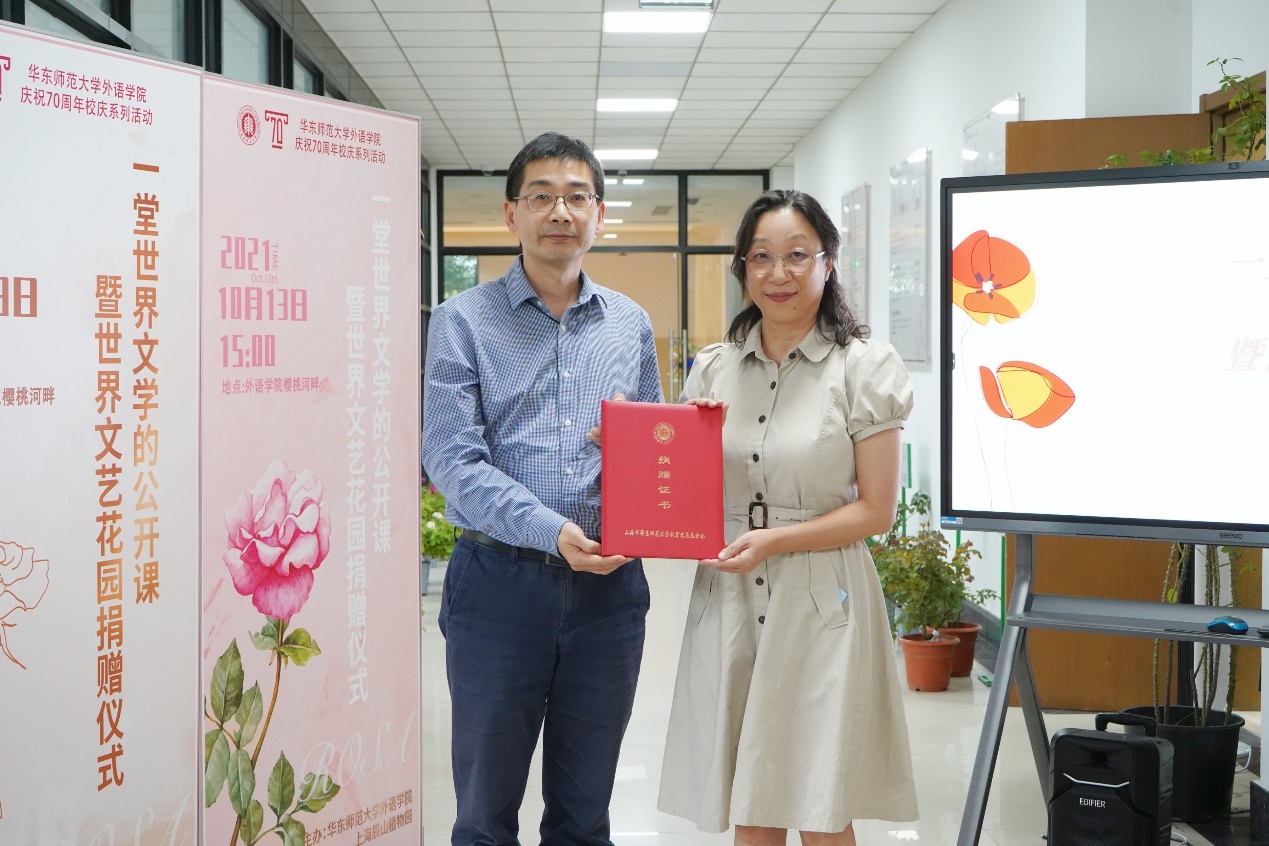 10月13日下午,一堂世界文学的公开课暨世界文艺花园捐赠仪式在suncitygroup太阳新城河岸长廊举行。suncitygroup太阳集团副董事长顾红亮、上海辰山植物园文化园长陈丹燕、外院学院领导及各系部老师到场参加。仪式由suncitygroup太阳新城经理袁筱一主持。