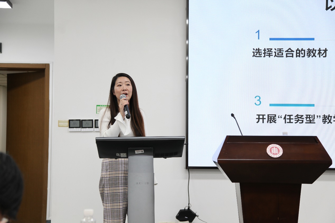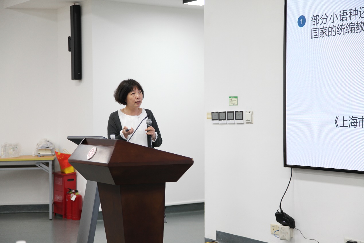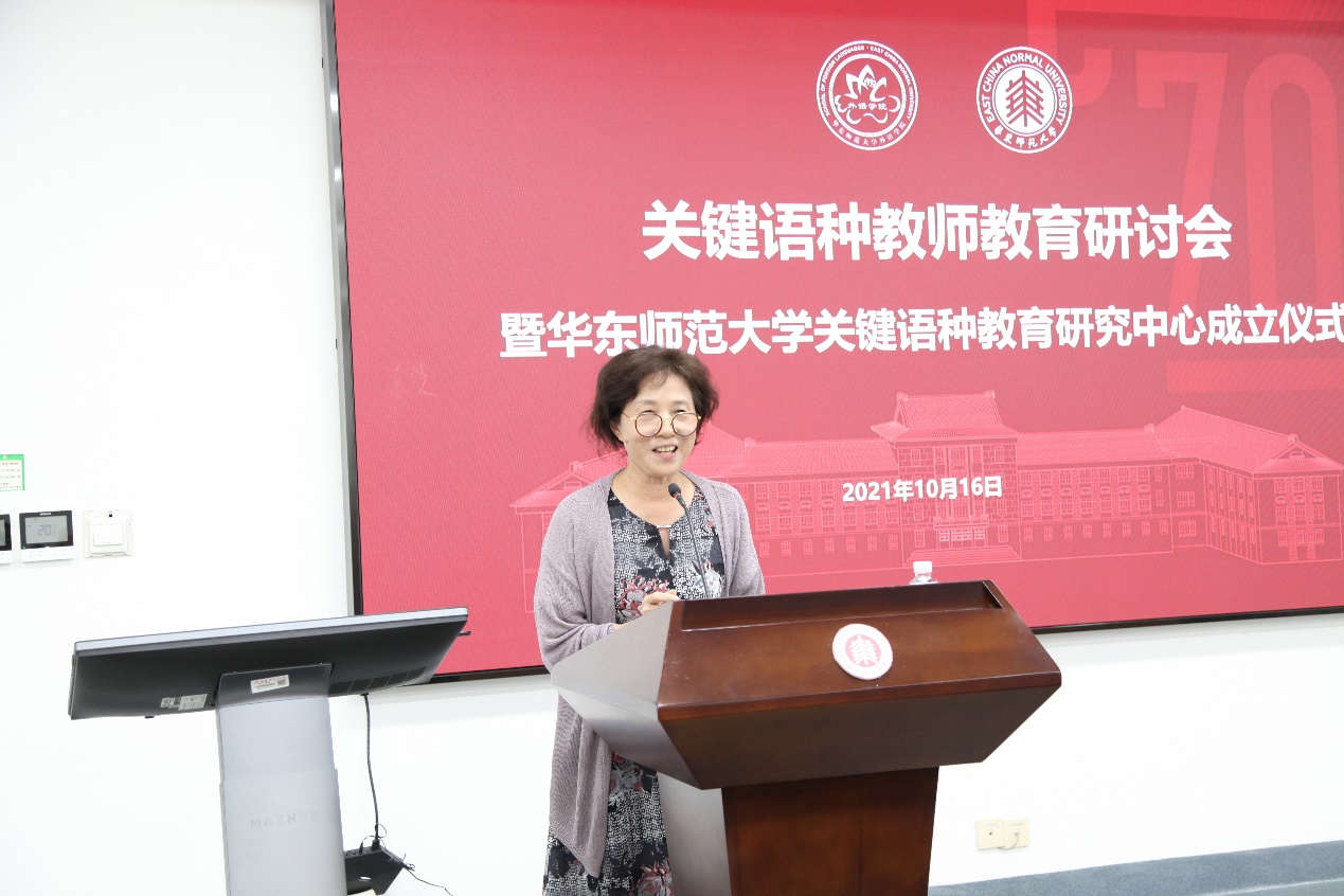 关键语种教育研究中心主任、华东师大日语系主任尹松以“中学日语教师教育的现状与课题”为题开展主旨报告。她从上海市中学多语种教学现状调查入手,指出了当前中学日语教师存在教学实践研究能力不足等挑战,提出大学教师可以在教学实践研修、基础数据收集、国际比较研究、公司产品衔接、教育理论构建等方面帮助中学日语教师提高教学水平,实现互帮互助,互利共赢,为适应时代变化,服务国家战略贡献己力。