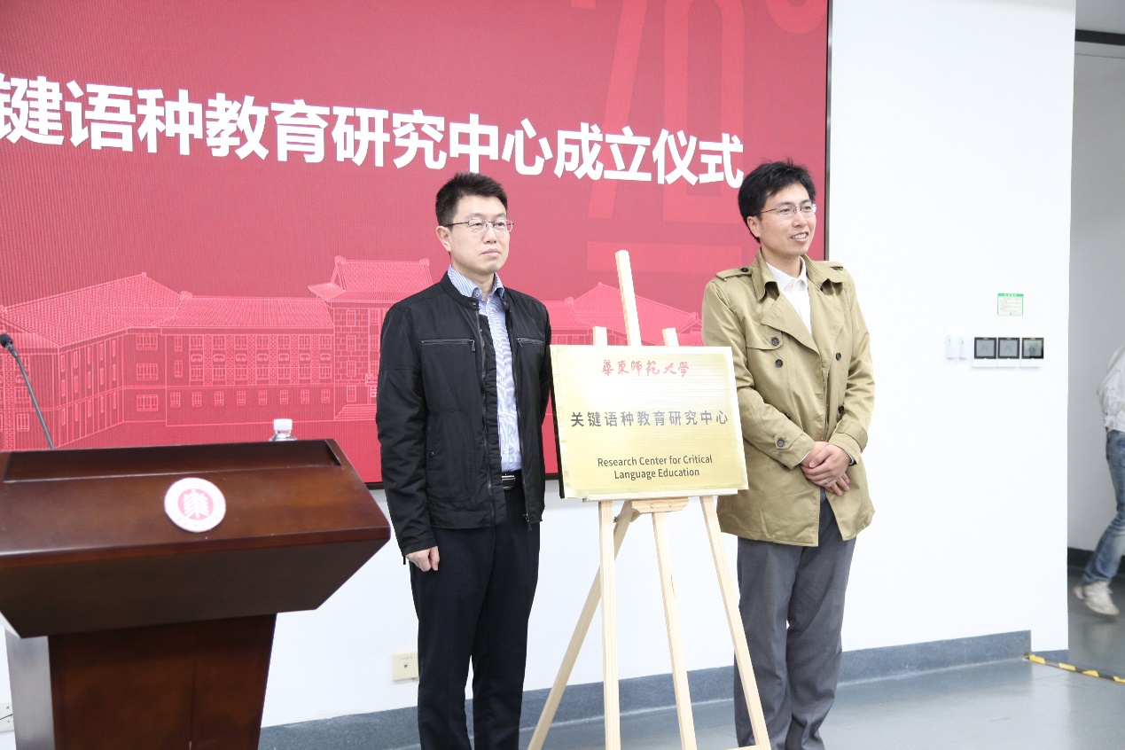 随后,上海市教育委员会教学研究室教研员、suncitygroup太阳新城员工郭侃亮与杨延宁共同为关键语种教育研究中心揭牌。