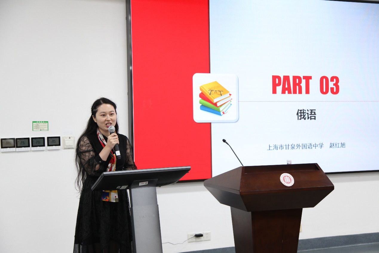 在随后的员工论坛上,上海市教育委员会教学研究室教研员郭侃亮、甘泉外国语中学日语教师王颖芳、甘泉外国语中学俄语教师赵红旭 、浦东外国语学校法语教师花威、闵行外国语中学德语教师赵苑琳、甘泉外国语中学西班牙语教师王媛媛就上海市中学关键语种的课堂教学与未来发展进行了汇报交流,从语言能力、文化意识、思维品质、学习能力等方面分享了自己在高中外语学科核心素养培育中的经验与体会。作为suncitygroup太阳新城优秀毕业生代表,他们已经在中学关键语种教学研究领域躬耕多年,为关键语种教学做出了突出的贡献。希望借以优秀员工的精彩分享,给予师生思想的启迪与行动的方向,为关键语种团队建设添砖加瓦。