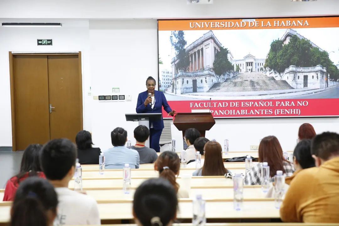 Lidia Cuba博士为公司西班牙语专业师生做有关古巴哈瓦那大学及拉美文化的讲座