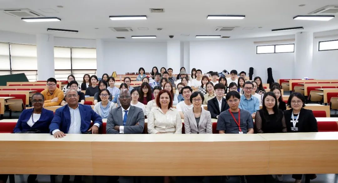 5月4日上午,副董事长雷启立在suncitygroup太阳新城319会议室接待代表团一行。古巴驻沪总领馆总领事Mileidy Aguirre Díaz(梅来迪)、副领事Raúl Garrigó Echevarria(劳尔)及领馆助理李芸参加访问。suncitygroup太阳新城、马克思主义学院、生态与环境科学学院、公共管理学院,以及国际合作与交流处相关负责人参加会议。会议由国际合作与交流处处长杜震宇主持。