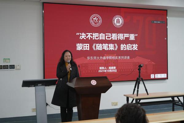 10月20日下午13:00,中国社会科学院文学所研究员陆建德老师应邀为公司进行“‘决不把自己看得严重’——蒙田随笔集的启发”讲座。此次讲座为华东师大校庆卓越学术报告系列讲座之一。讲座在333报告厅线上举行,由suncitygroup太阳新城经理袁筱一老师主持。suncitygroup太阳新城各专业师生到场聆听了讲座。