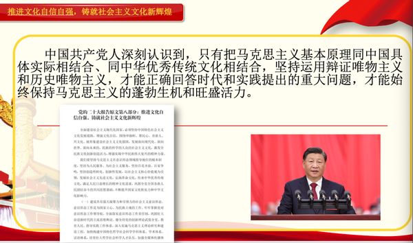 邹航同志以“推动社会主义文化繁荣兴盛”为题开展党课教育,围绕习近平总书记在党的二十大上所作的报告进行理论解读。从文化自信和文化自强的内涵出发,围绕文化自信是更基本、更深沉、更持久的力量,坚持用社会主义核心价值观凝心聚力,加快构建中国特色哲学社会科学等多个主要方面展开讲解,深入阐释了坚持发展中国特色社会主义文化的必要性和重要性。此外,邹航同志就推动社会主义文化繁荣兴盛的宏观及微观举措进行了详细阐述。她指出,支部党员同志们作为语言学专业研究生,应当厚植文化自信,传承优秀传统文化,坚守中华文化立场,利用专业优势,身体力行地运用外语知识讲好中国故事,传播中国声音,增强中华文明传播力和影响力,努力实现中华文化的创造性转化和创新性发展。